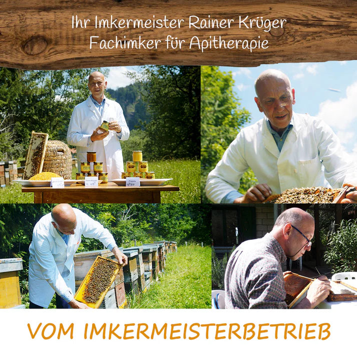 Tauche ein in die Welt des Deutschen Waldblütenhonigs und lass Dich von seiner außergewöhnlichen Qualität und Reinheit verzaubern. Dieser Honig ist das Ergebnis sorgfältiger Imkerei und der Liebe zum Detail, die in jedem Glas spürbar wird.