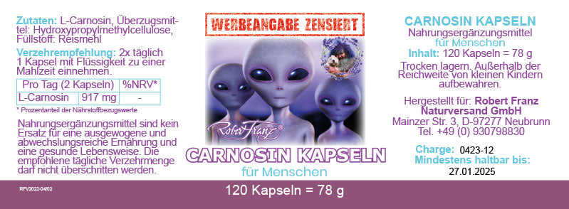 Inhaltsstoffe: 2 Kapseln enthalten 917 mg L-Carnosin (= 0% NRV*)
