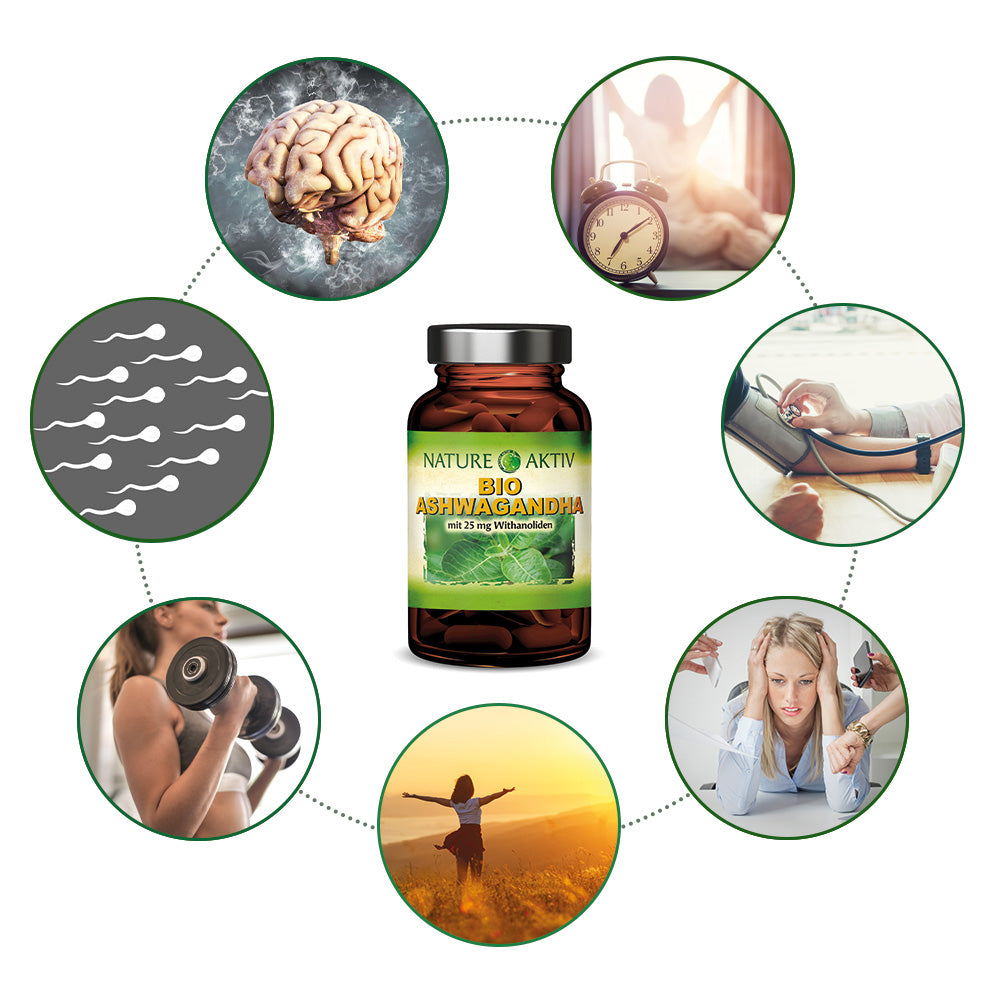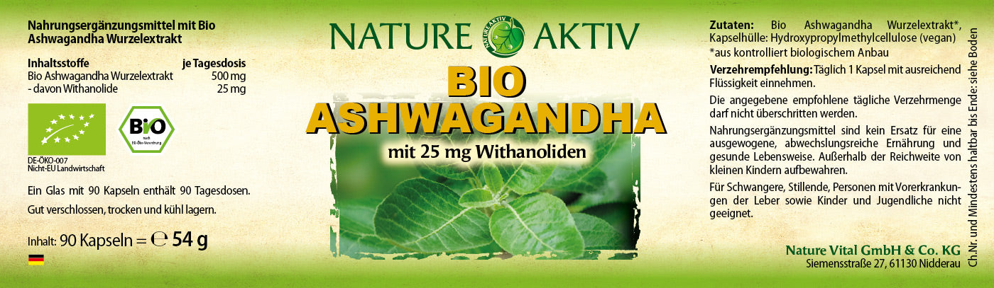Unsere Nature Aktiv Bio Ashwagandha Kapseln sind sorgfältig formuliert, um Ihnen eine hochwertige Quelle von Bio Ashwagandha Wurzelextrakt (Withania Somnifera) zu bieten. Dieses Adaptogen, auch bekannt als Schlafbeere, Winterkirsche oder Indischer Giseng, wird in einem nachhaltigen und pestizidfreien Anbau in Indien geerntet.