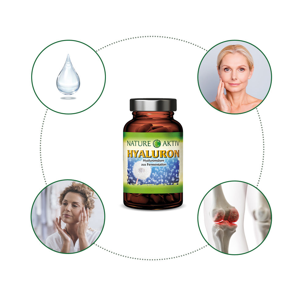 Hyaluron wird als Hyaluronsäure oder Hyaluronate bezeichnet und ist im ganzen Körper mit einer Vielzahl von positiven Eigenschaften als Wasserspeicher vorhanden. Hauptsächlich findet man Hyaluron im Bindegewebe (wovon sich über 50 % in der Haut befinden) und in den Zellzwischenräumen. Hyaluron ist ein wichtiger Bestandteil der Gelenkflüssigkeit und ein Baustein der Gelenkknorpel.