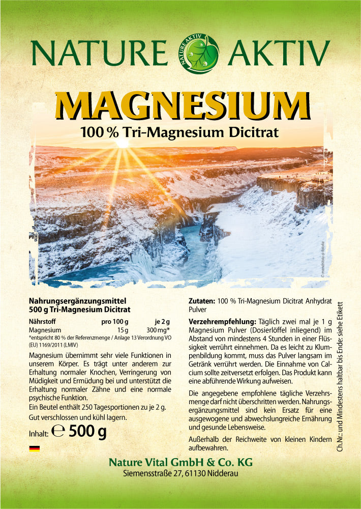 Nature Aktiv Magnesium ist in Form von Tri-Magnesium Dicitrat erhältlich. Tri-Magnesium Dicitrat wird rasch resorbiert und ist gut verträglich. Der Anteil an elementarem Magnesium liegt beim Tri-Citrat bei 15 %. Mit seinem neutralen bis basischen pH-Wert von über 8, schont es ebenfalls die Verdauung.
