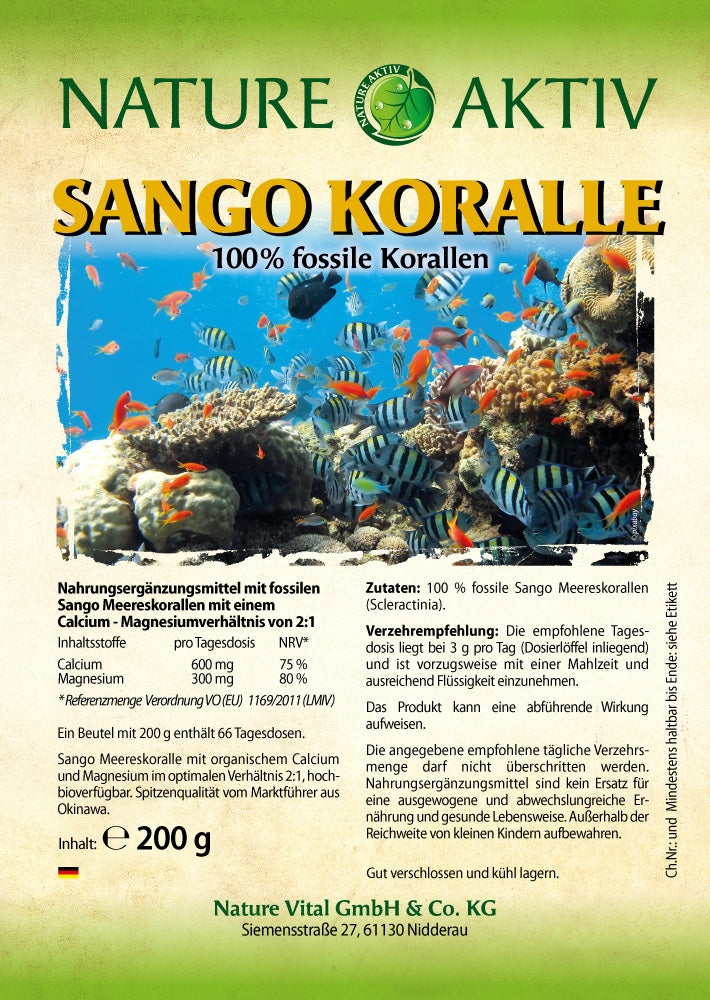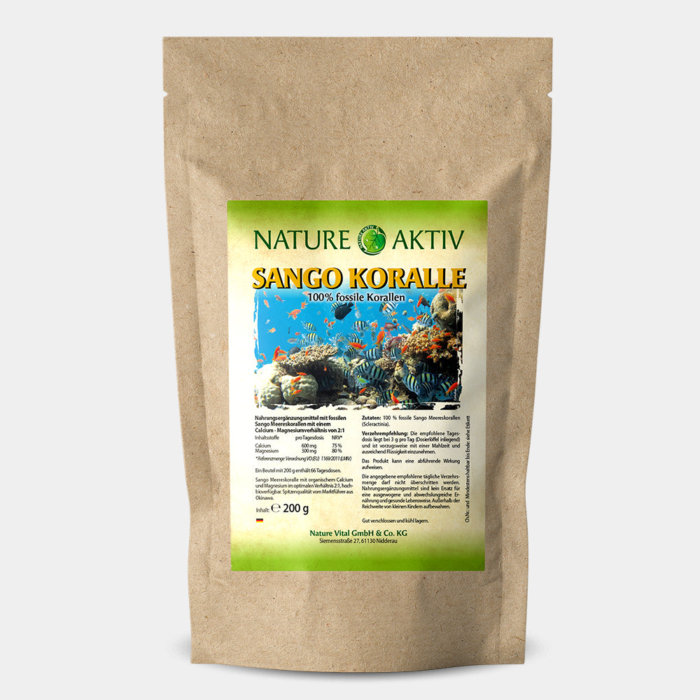 Sango Koralle stärkt Knochen, Zähne und das Immunsystem und unterstützt Nervenzellen, Energiestoffwechsel, Muskelfunktion und Blutgerinnung.
