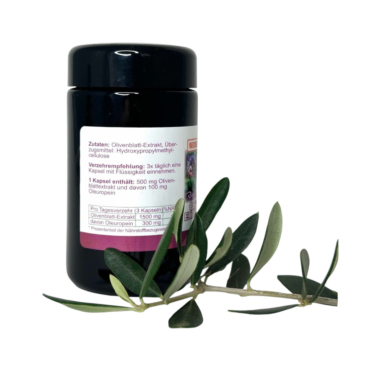 Inhaltsstoffe: 1 Kapsel enthält 500mg Olivenblattextrakt (= 0% NRV*) und davon 100mg Oleuropein (= 0% NRV*).