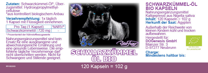* aus kontrolliert biogischem Anbau, kaltgepresst aus Nigella sativa L.