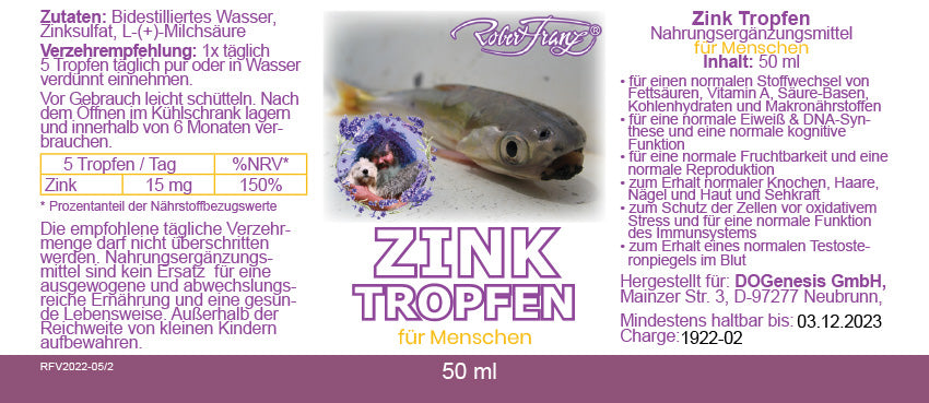 Inhaltsstoffe: 8 Tropfen enthalten 25 mg Zink (= 250% NRV*). *Prozentsatz der Nährstoffbezugswerte (Nutrient Reference Values) nach Verordnung (EU) Nr. 1169/2011